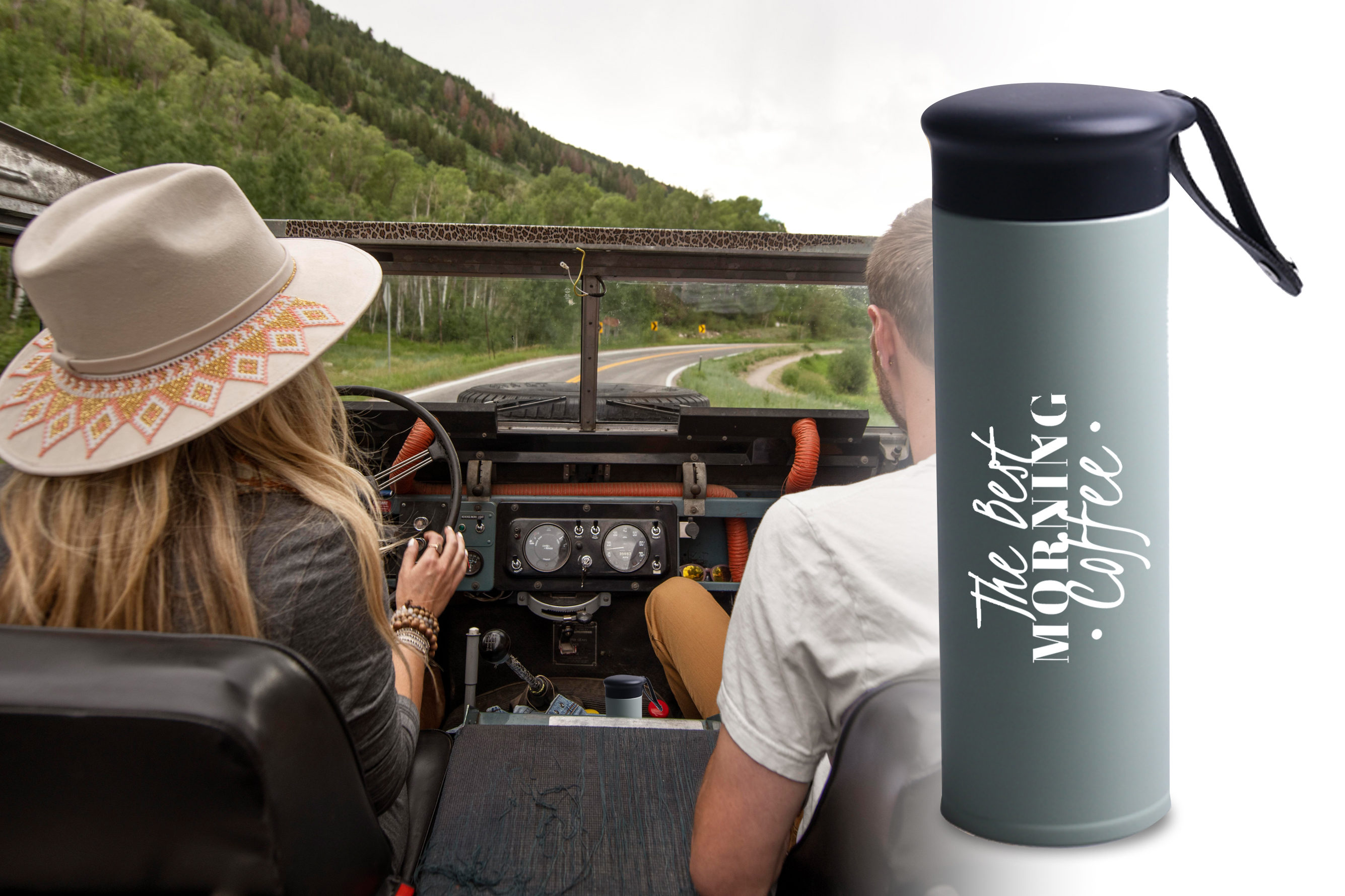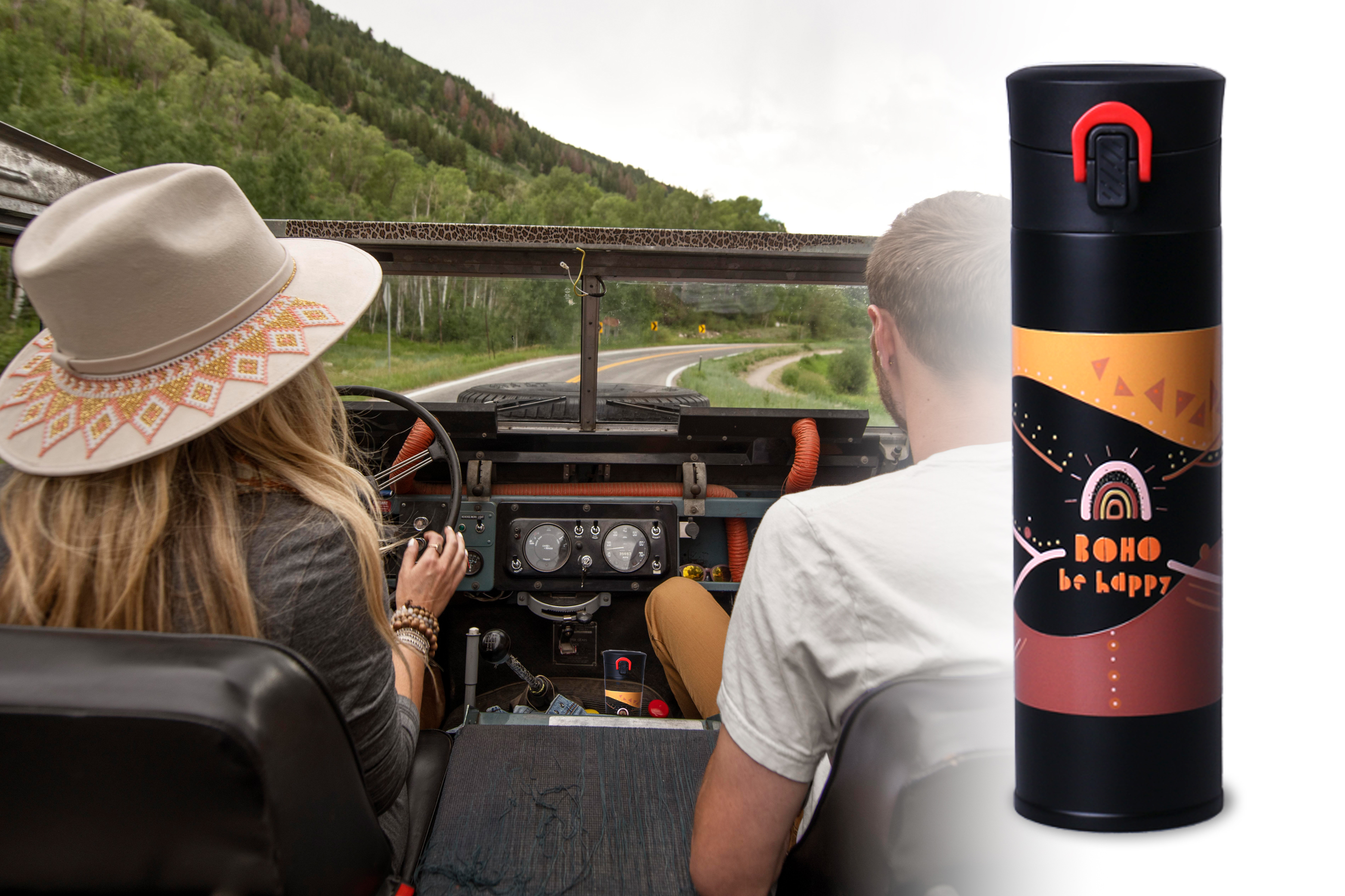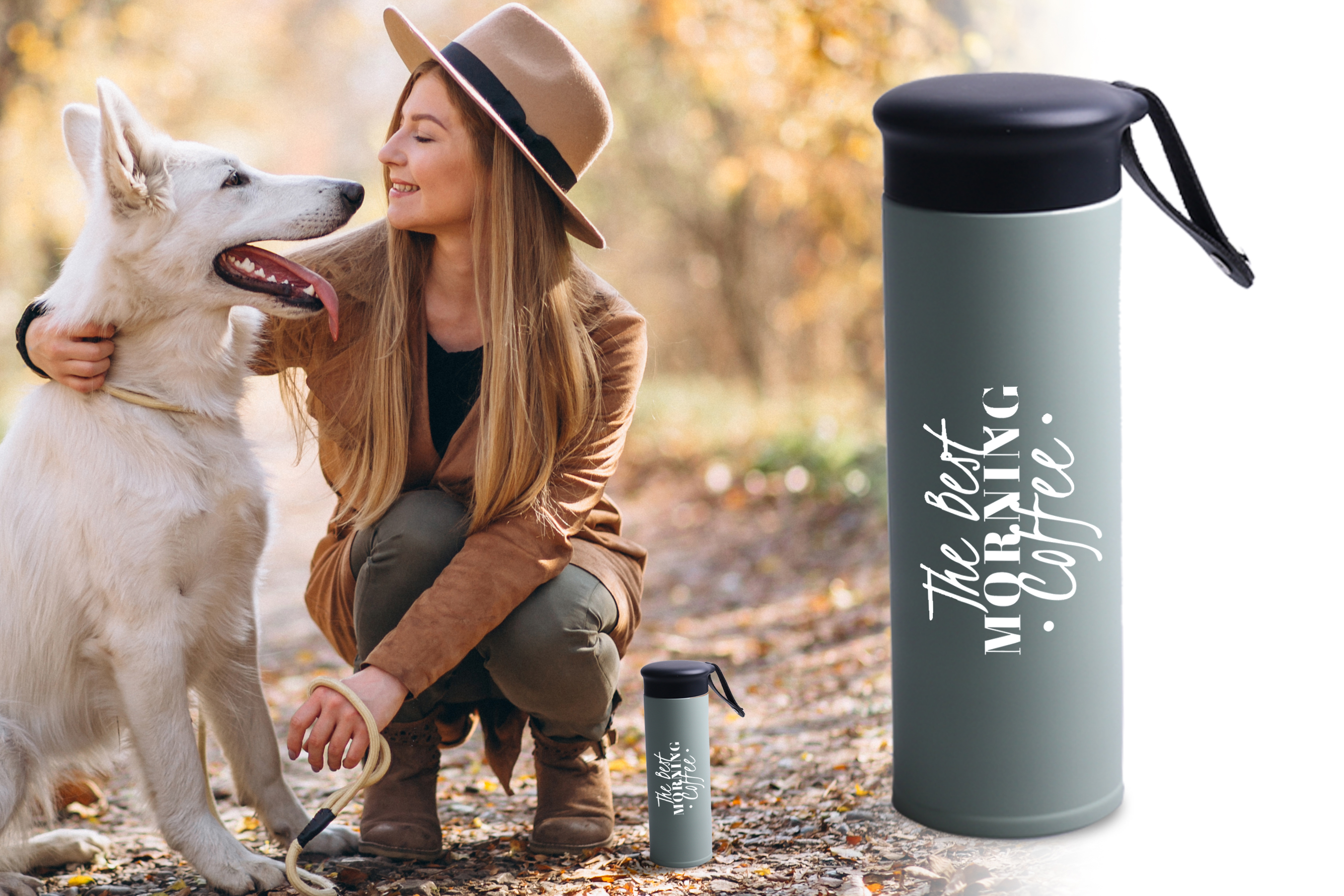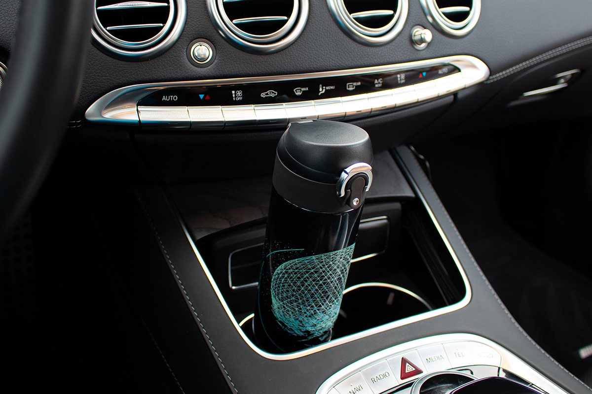 Der Durchmesser des Thermobechers ist an die Autohalterungen angepasst. Damit eignet sich dieser als ständiger Begleiter.