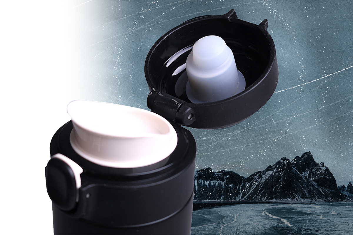 Der mit dem "Keep Open"-System ausgestattete Becherverschluss hält den Deckel in einer stabilen Position und daseingebaute Schloss verhindert ein versehentliches Öffnen des Bechers.