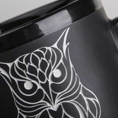 Becher mit matter Glasur außen, glänzende Glasur innen und am Henkel