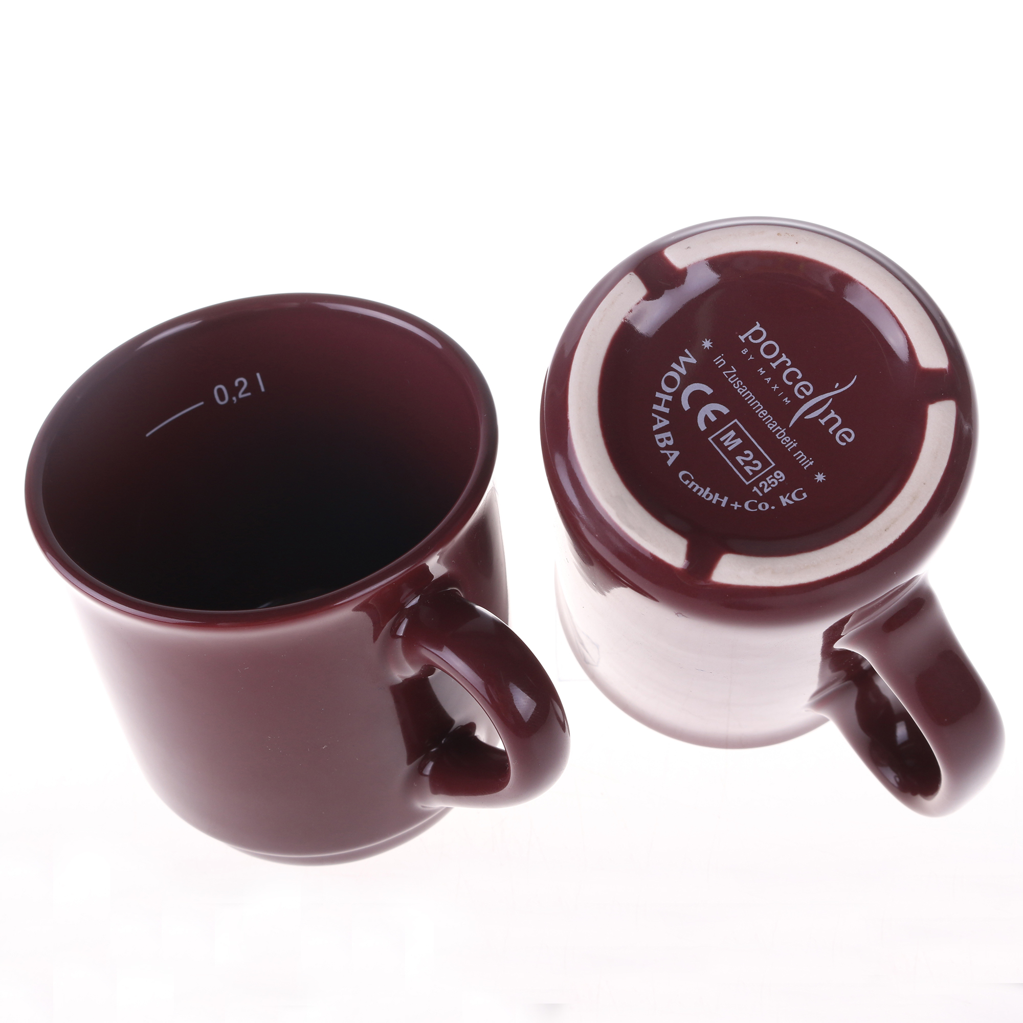 Ein Becher, der speziell für Weihnachtsmärkte entwickelt wurde. Er hat eine klassische Henkelform und einen zylindrischen Korpus, der das Stapeln ermöglicht. Der Becher hat ein geeichtes Fassungsvermögen von 200 ml und trägt das Zeichen der für die Vermarktung zuständigen Stelle. Die Kennzeichnung entspricht den Anforderungen der Europäischen Union