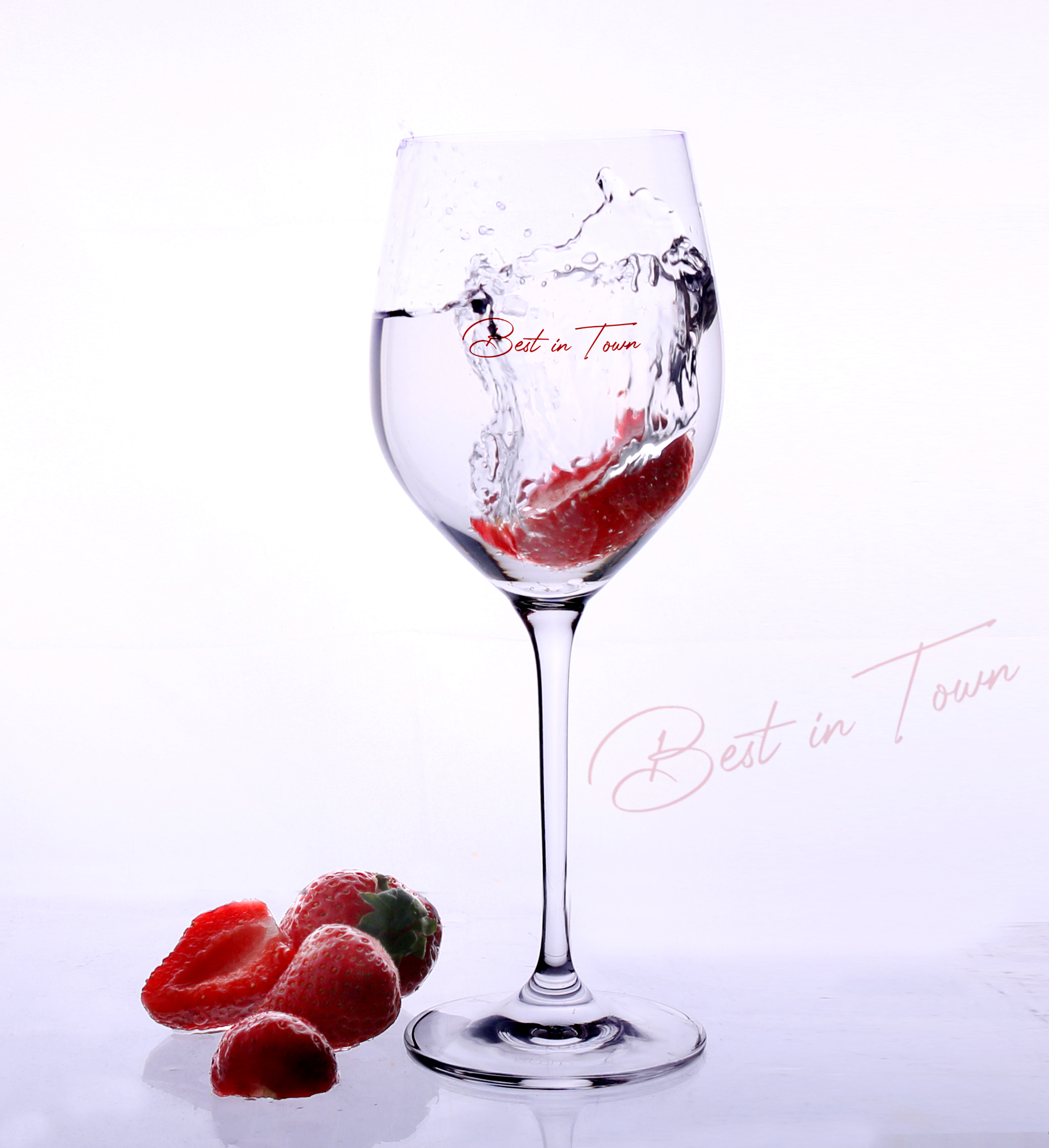 Elegantes Weinglas. Wirkt noch interessanter mit einer filigranen Gravur oder einem dezenten Druck, wodurch zugleich das Besondere des Getränks hervorgehoben und das Prestige des Unternehmens betont wird.
