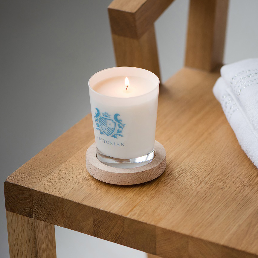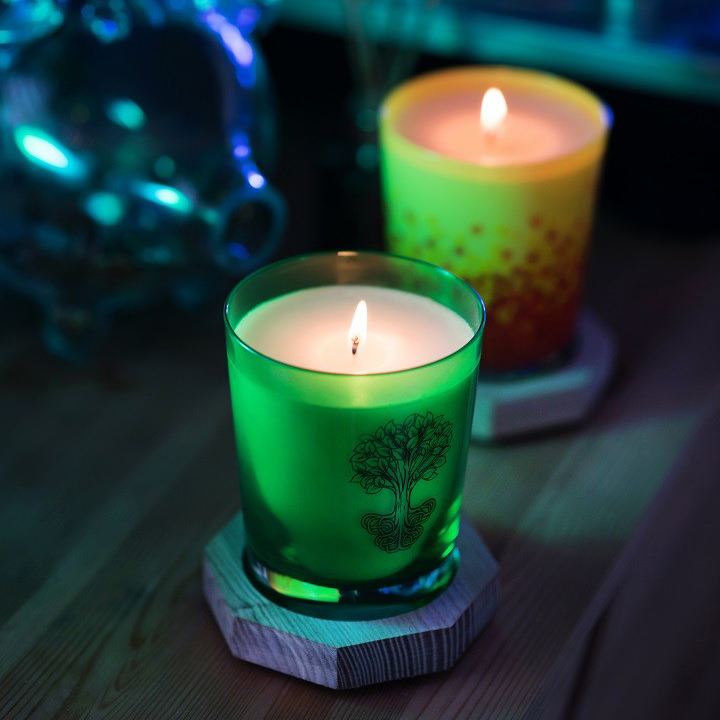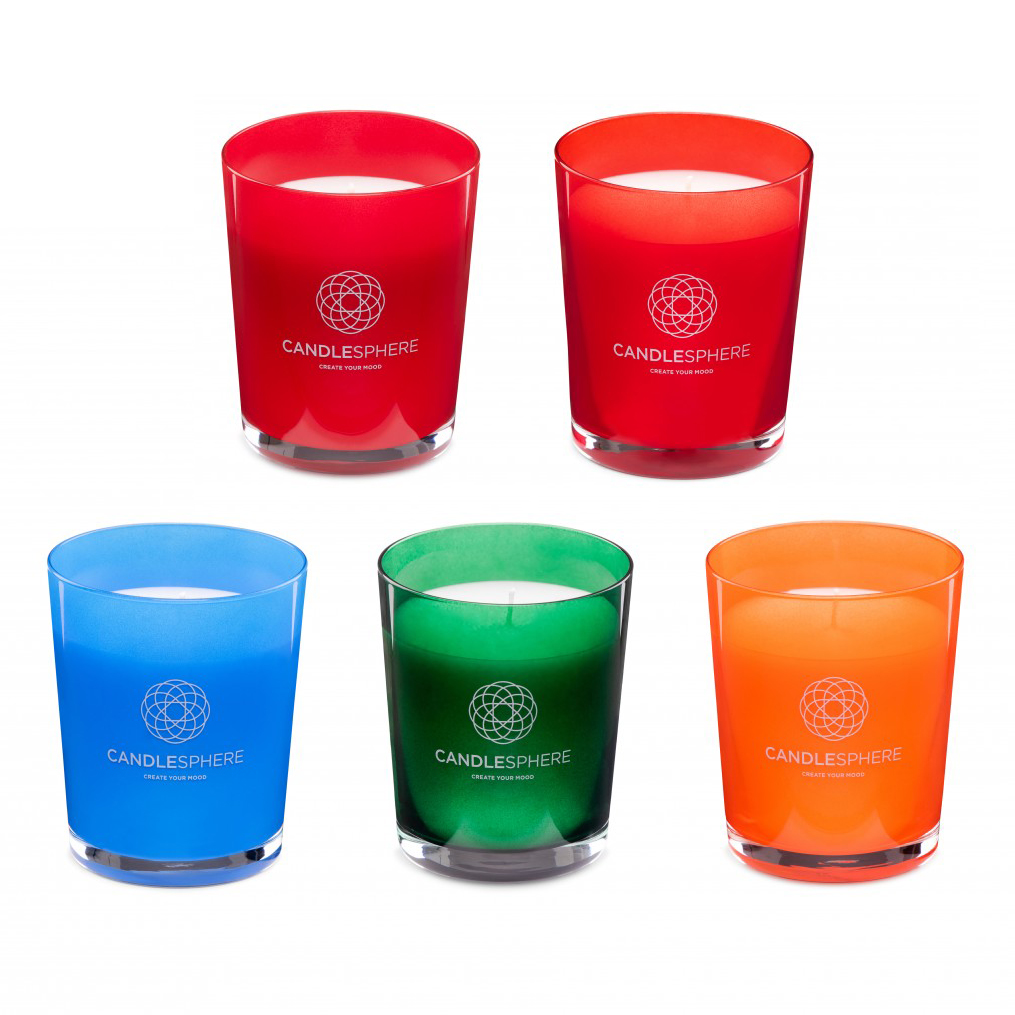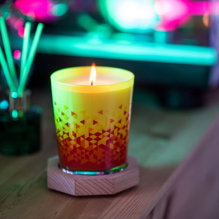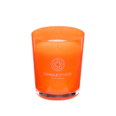 Die edle Kerze LUMENA mit harmonischen Wänden, deren Dekoration auf äußerst wirkungsvolle Weise die Position der beworbenen Marke unterstreicht.