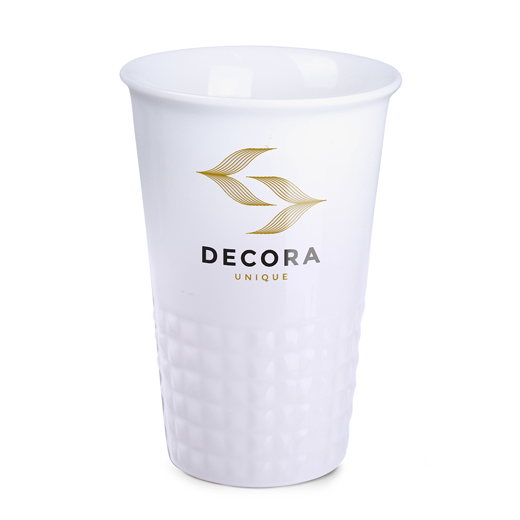 Dezentes Finish am Boden des Bechers in Form einer symmetrischen Paspelierung. Doppelwandiger Porzellanbecher für hervorragende Wärmeisolierung.