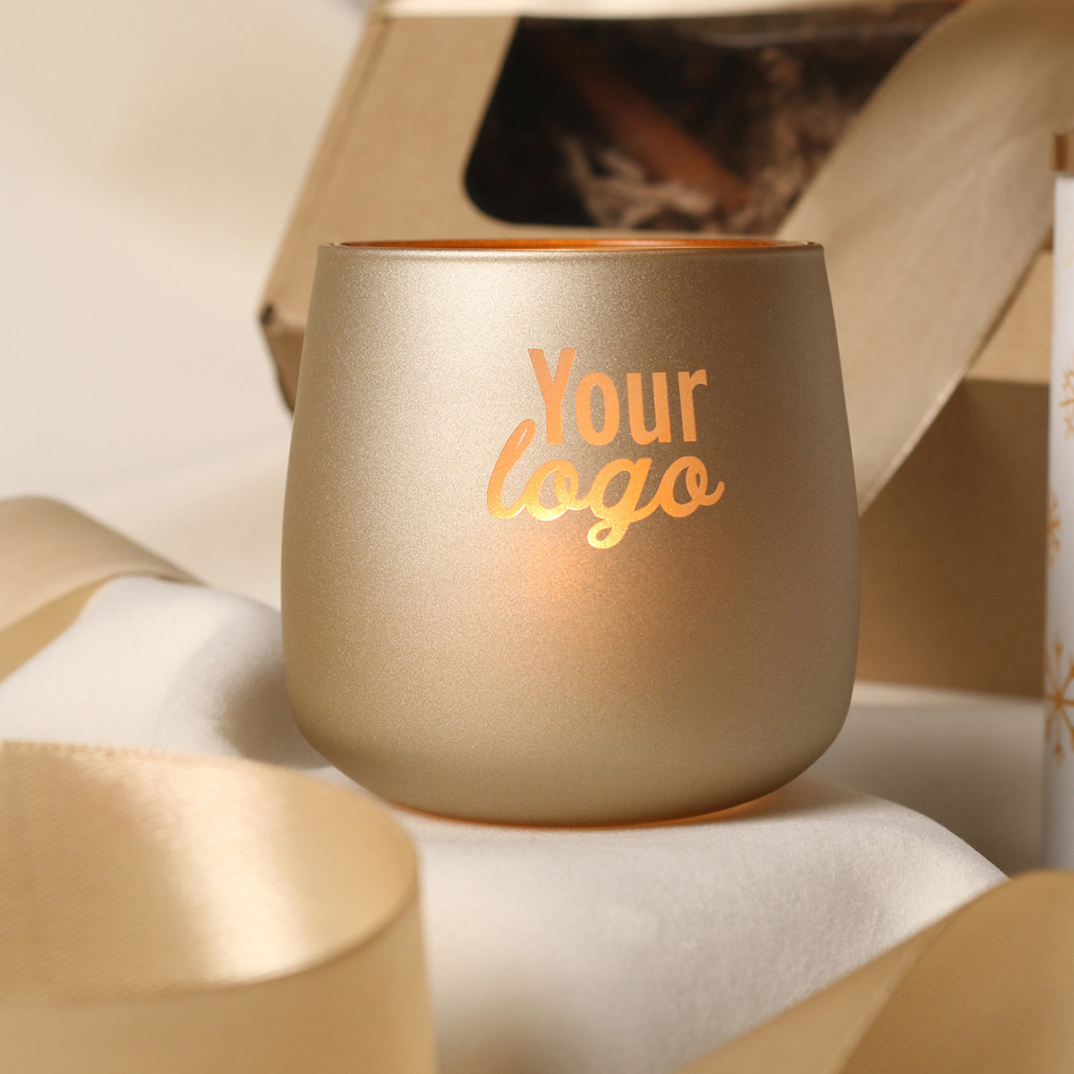 Das Set Sensitive beinhaltet: eine Windlicht Sensitive (mattgold) mit Soja-Teelicht und Veredelungsmöglichkeit, Amaresti Pralinen - Mandeln in Schokolade mit Zimt, Sencha-Grüntee mit Kirschen und Rosenblättern, verpackt in einer Röhre mit Wintermotiv, Luxury Chocolate - belgische Trinkschokolade in einer Röhre mit Wintermotiv. Das Ganze verpackt in einer stilvollen Öko-Kartonverpackung mit Fenster. Optionen für zusätzliche Veredelung: Druck auf der Windlicht, ein Anhänger mit Firmenlogo, ein Band oder eine stilvolle Hülle mit Wintermotiv, veredelt mit Goldakzenten.