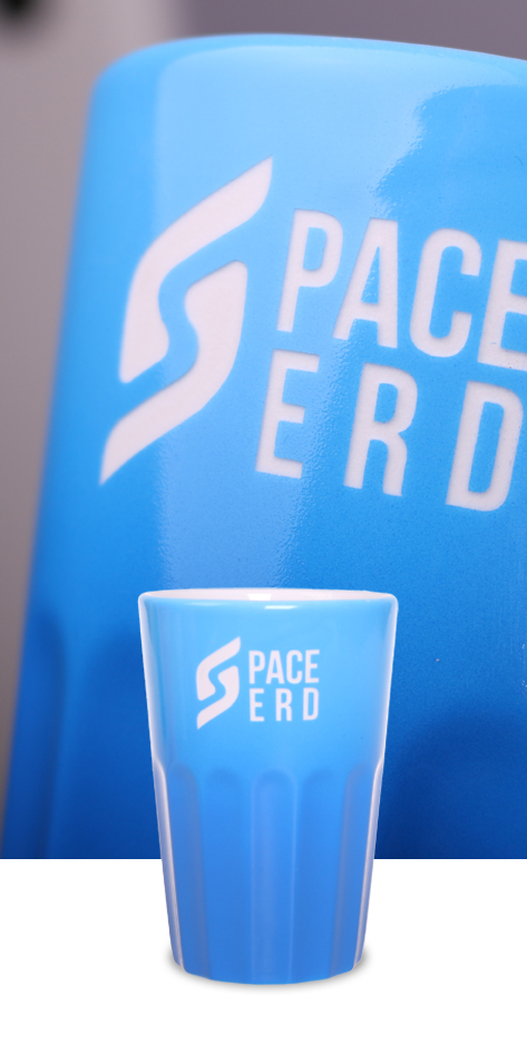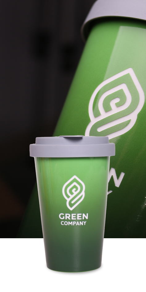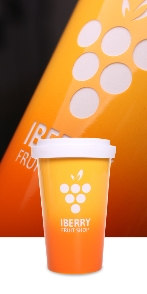 - Dekoration auf der kompletten, äußeren Fläche des Bechers